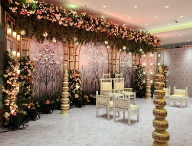 Celebrate your special day with a grand reception in our elegantly designed venue, tailored to make your wedding unforgettable.